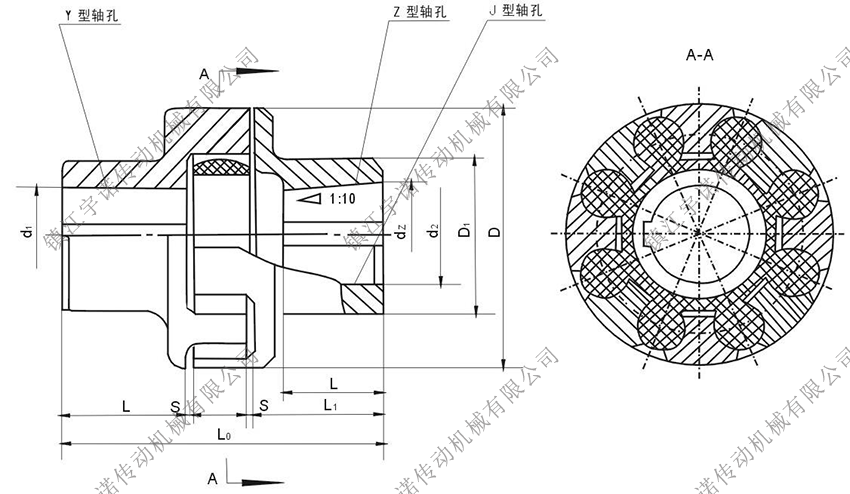 ML型基本型梅花形彈性聯(lián)軸器是由兩個帶凸爪形狀相同的半聯(lián)軸器和彈性元件組成,利用梅花形彈性元件置于兩半聯(lián)軸器凸爪之間,以實現(xiàn)兩半聯(lián)軸器的聯(lián)接?;拘兔坊ㄐ螐椥月?lián)軸器更換彈性元件時兩半聯(lián)軸器需要沿著軸向移動才能達到更換彈性元件的目的。