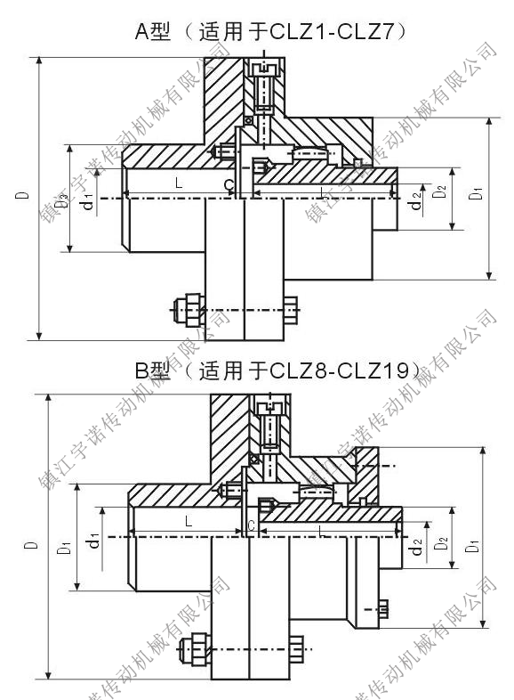 CLZ型齒式聯(lián)軸器在工作時(shí),兩軸產(chǎn)生相對(duì)角位移,內(nèi)外齒的齒面周期性作軸向相對(duì)滑動(dòng),必然形成齒面磨損和功率消耗,因此,齒式聯(lián)軸器需在有良好和密封的狀態(tài)下工作。齒式聯(lián)軸器徑向尺寸小,承載能力大,常用于低速重載工況條件的軸系傳動(dòng),高精度并經(jīng)動(dòng)平衡的齒式聯(lián)軸器可用于高速傳動(dòng),如燃汽輪機(jī)的軸系傳動(dòng)。由于鼓形齒式聯(lián)軸器角向補(bǔ)償大于直齒式聯(lián)軸器。